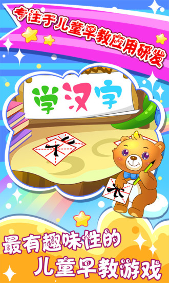 儿童游戏学汉字app软件下载这是一款专为儿童打造的汉字学习启蒙软件。在儿童游戏学汉字app中,孩子们可以通过有趣的动画、朗朗上口的儿歌等多种趣味学习方式,学习汉字,让孩子能够赢在起跑线,并且提高孩子对汉字学习的兴趣。