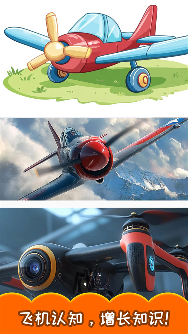 儿童飞机拼图app一款非常有趣的儿童益智软件!在这里,您可以体验有趣的益智游戏,帮助孩子们充分释放自己的想象力,将混乱的小图片拼凑成一幅完整的大图片,展示益智技能,锻炼观察和协调能力;飞机有很多种,包括飞艇、直升机、战斗机、喷气式飞机、火箭和热气球。您可以在应用程序中体验有趣的谜题,没有任何限制。有兴趣的伙伴现在可以在线下载,还有更多有趣的飞机益智拼图等着你去体验!