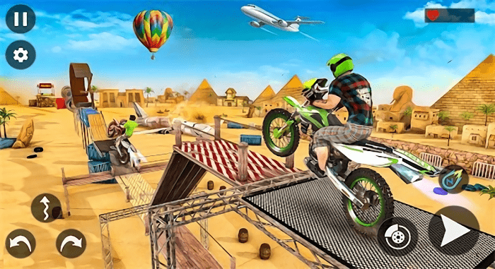 自行车特技比赛3D安卓版游戏是一款以高空极限特技为核心的竞速模拟类游戏,玩家将骑上专业特技自行车,在各种高难度的赛道中完成惊险动作与高分挑战。游戏采用真实3D物理引擎打造,带来极具沉浸感的速度与技巧结合的极限运动体验。在自行车特技比赛3D安卓版游戏里面,无论是在城市屋顶、峡谷滑道还是漂浮空中的障碍赛道中,玩家都将面对重重挑战,完成翻转、跳跃、甩尾等华丽动作,争夺特技之王的荣耀。