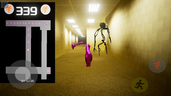 后室欺骗是一款同人恐怖冒险手游,游戏结合了《后室》的迷宫,为玩家打造了庞大的地图。在游戏中玩家将进入迷宫,收集四处散落的紫色水晶,迷宫中还有可怕的怪物会出现在各个角落追杀你,你要做的就是不断奔跑,甩开怪物并收集完所有的水晶成功通关。游戏玩法非常刺激有趣,非常适合喜欢逃脱类的玩家游玩!还加入了后室中的各种怪物以及关卡,每次通关都可以提高层数,并且要收集的水晶变多,怪物也将变得更加强大,非常具有挑战性!