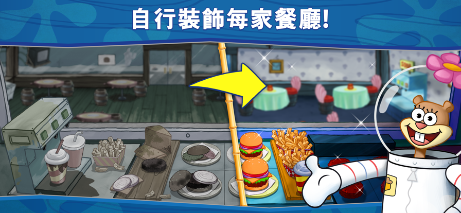 海绵宝宝大闹蟹堡王无限金币钻石游戏带给玩家无尽的烹饪过程。作为蟹堡王唯一的厨师,你会经营一家美味的蟹堡王餐厅,里面会有很多经典的动漫内容,尤其是所有场景都是还原的,口味和人物都非常经典,让玩家产生怀旧的感觉。所有的厨房布局都需要自己设置,自己管理。游戏有真实的顾客评价,好吃的话会收到好评,不好吃的话会受到惩罚并扣除一部分餐费。感兴趣的朋友不要错过下载。