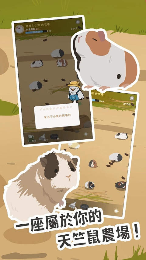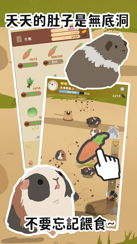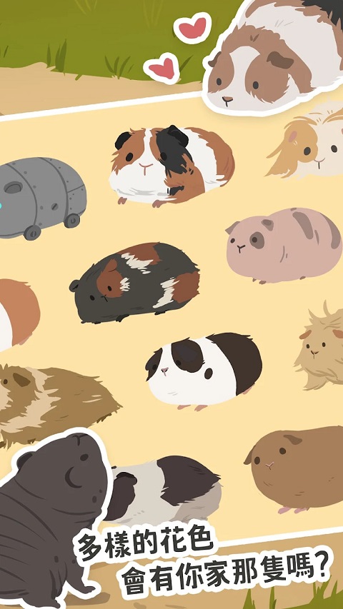 天竺鼠农场游戏这是一个模拟经营游戏,玩家将建立和管理自己的天竺鼠农场。游戏还提供好友互动、天竺鼠选美、合作任务等社交游戏,以及线下收入、幸运市场等福利制度。结合真实天气和状态模拟,玩家需要关注天竺鼠的健康、饥饿和情绪,享受沉浸式训练的乐趣。在游戏中,玩家可以培养出短毛、倒毛、卷毛等多种可爱的天竺鼠,并通过喂食、清洁等互动方式解锁新品种。农庄可以自由布置,提供五种房间,十种主题装饰,二十多种功能设施。玩家可以随意创建个性化的天竺鼠农场。感兴趣的朋友不要错过下载。
