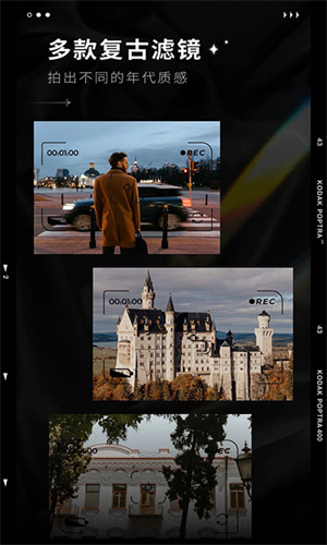 Kapi相机是一款模拟复古相机的佼佼者,它通过先进的算法技术,让照片和视频更加贴近现实,呈现出真实感光纹理,为作品注入专业和艺术的元素。无论是想要制作出梦幻般的背景,还是想要营造出神秘的氛围,Kapi相机都能轻松实现,为用户的影像作品增添无尽的趣味和个性。时,它还支持视频录制功能,让用户在记录生活的同时,也能享受到复古风格的独特魅力,有需要的小伙伴现在就来下载体验吧!