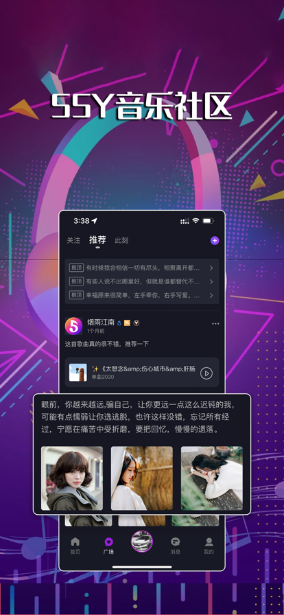 55Y音乐社区苹果版下载作为音乐爱好者的专属社交圈,不仅为乐迷们提供了丰富多样的音乐资源,还打造了一个充满活力和互动性的社交平台。55Y音乐社区app汇集了众多国内外优质的音乐资源,无论你喜欢哪种类型的音乐,都能在这里找到满足你口味的作品。你可以随时随地畅听各种流行歌曲、经典老歌、独立音乐等,感受音乐带来的美好与感动。