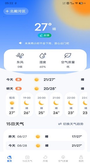 《小米天气免费版》秉承了小米一贯的设计理念——简洁、直观。打开应用后,首页呈现的是简洁明了的天气概况,包括当前气温、天气状况、空气质量等关键信息。整个界面干净整洁,除了基本的天气数据外,页面上几乎没有多余的元素,避免了冗余信息的干扰,用户可以迅速找到自己想要的天气数据。操作上也非常直观,用户只需轻松滑动或点击,就能查看不同日期的天气预报或相关信息。无论你是第一次使用还是熟悉的用户,都能迅速上手。