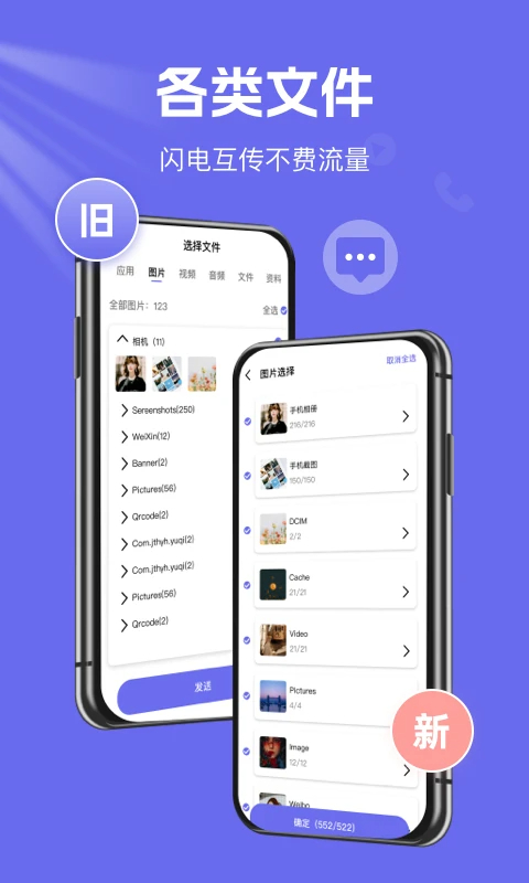 手机搬家快速换机app是一款简单好用的手机搬家换机工具。你可以直接传输所有的数据,如联系人,信息,软件,图片,音频,视频和文本从你的旧手机到你的新手机,只需点击一下。你不需要再下载了。这很简单。此外,在更换设备时,不需要连接网络。只需选择文件并直接传输即可。根本不需要数据流量,所以每个人都不需要担心自己的数据流量被扣除。您可以通过这个软件大胆地更换设备,充满信心。