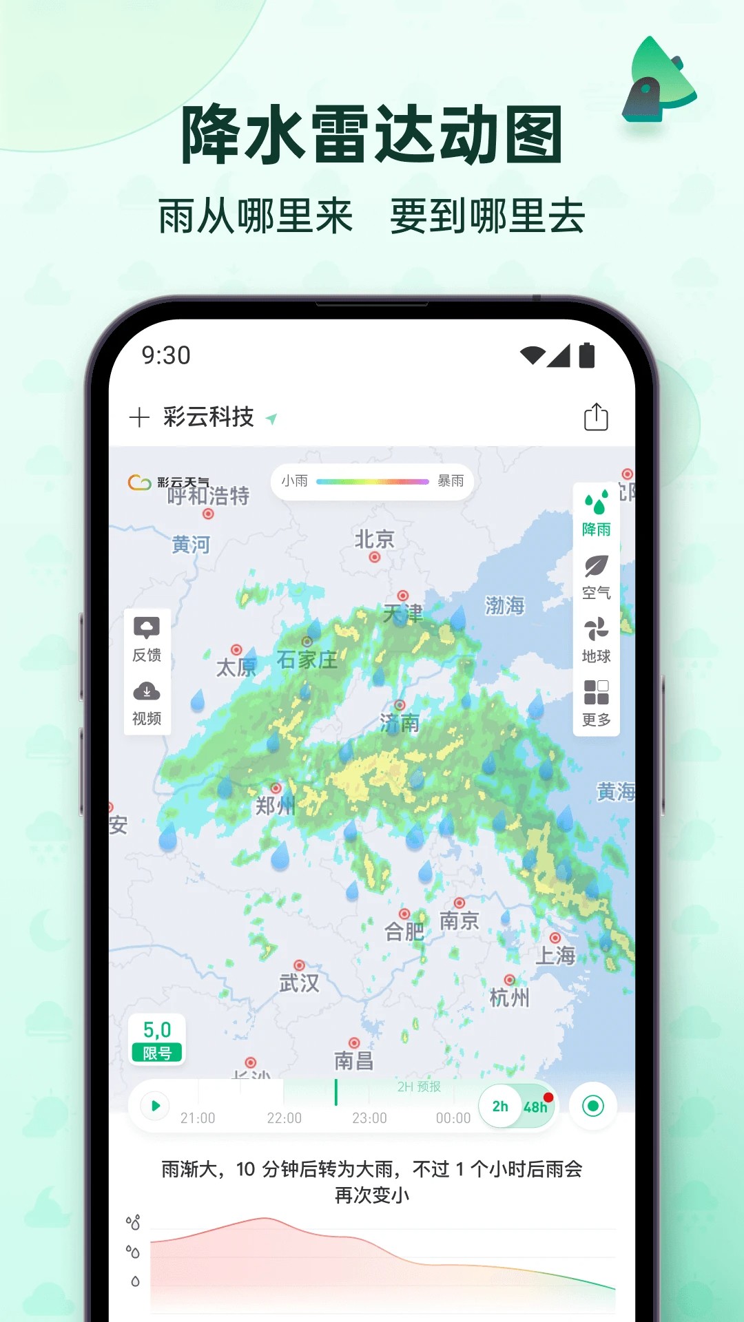 彩云天气是一款全新的免费手机天气软件,采用全新的图像处理技术,可以让用户及时获取各时间段的天气预报,还覆盖全国所有城市,及时了解最新的天气状况信息,自由享受优质的天气查询服务,还具有个性化的界面设计,无需任何尽有即可上手使用,方便用户轻松管理全面的天气数据,包括空气质量,PM2.5,降雨量,风向等,轻松了解未来15天的天气,能完全满足所有使用需求,还能及时播报异常天气,方便用户轻松自由出行。