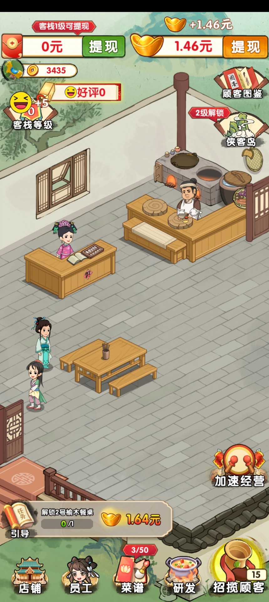 客栈模拟下载最新版安装玩家可以通过与来到客栈的客人互动来招募他们成为门客。每个客人都有自己的喜好和技能,招募后可以为客栈提供不同的帮助。例如,有些客人可以吸引更多的食客,有些客人可以提升客栈的布局等级等。玩家需要根据不同客人的特点进行招募,以最大化他们的贡献。