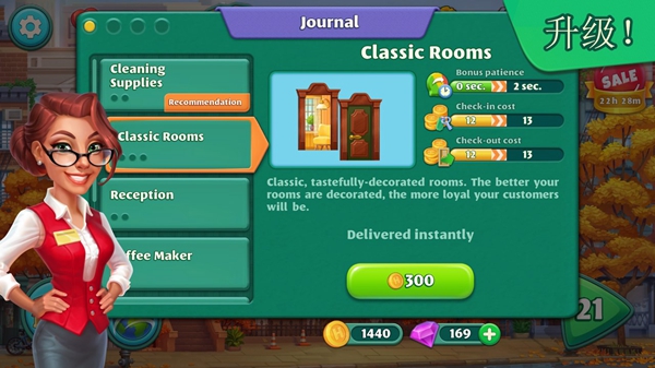 《疯狂大酒店》(Grand Hotel Mania)是一款好玩的经营策略游戏,玩家们将从小旅馆开始,逐步打造自己的酒店帝国。在游戏中,玩家需要对酒店进行全方位的改造,包括扩大客房、增加设施、提供美食等,让客人满意并留连忘返。游戏的画面精美细致,操作简单易懂,适合各年龄段的玩家。