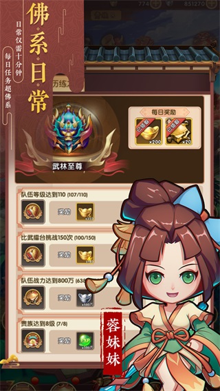 全民武馆是一款集策略与卡牌于一体的武侠主题手游,它将中国传统文化中的武术精髓与现代游戏设计理念相结合,创造出了一个独特的虚拟江湖世界。玩家将在游戏中扮演武林高手,招募各路英雄豪杰,建立自己的门派,争夺武林至尊的地位。玩家可以收集来自不同流派的武林人士,每张卡牌代表了一位有着独特技能和背景故事的武侠角色。通过精心策划卡牌的搭配和阵型布置,玩家可以在战斗中发挥出最大的战斗力。每个角色都有其特定的武功秘籍和绝技,玩家需要根据敌人的特点来调整战术,制定最佳的战斗方案。