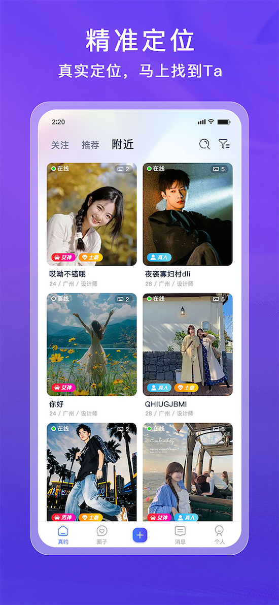 真约是一款备受好评的手机在线相亲平台,专为渴望邂逅真爱的你量身打造。平台汇聚了海量优质用户,无论你是喜欢阳光帅气的型男,还是偏爱温柔甜美的淑女,这里都能满足你的期待,众多帅哥美女正静候你的邀约。操作简单便捷,一键即可开启甜蜜聊天,轻松拉近彼此距离。感兴趣的朋友们,别再犹豫了,快来下载真约app,开启你的浪漫之旅吧!