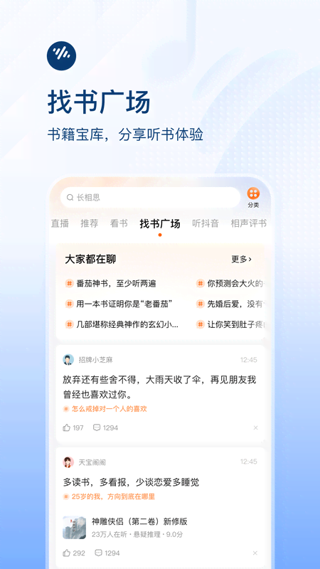 哪个免费有声读物软件比较好?我给你推荐一些免费的听力软件,APP为用户提供了一个免费的听歌平台,里面有丰富的图书资源可以听歌,还可以自由设置语音,打造个性化的听歌体验。你可以在任何时候找到你想听的小说。你可以离线免费收听。有需要的用户可以快速下载。